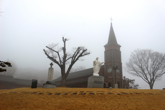 ±Ý°ÀÌ È帣´Â ÀÍ»ê Ȼ긮¿¡´Â »çÀû Á¦318È£·Î ÁöÁ¤°ü¸® µÇ´Â ³ª¹ÙÀ§¼º´çÀÌ ÀÖ´Ù. ±è´ë°Ç ½ÅºÎ°¡ Áß±¹¿¡¼ Á¶¼± ÇåÁ¾ 11³â 1845³â¿¡ »çÁ¦¼Ç°À» ¹Þ°í Æä·¹¿ÃÁÖ±³, ´Ùºí·ò½ÅºÎ¿Í ÇÔ²² Ȳ»ê³ª·çÅÍ¿¡ »ó·úÇÑ °ÍÀ» ±â³äÇϱâ À§ÇÏ¿© 1906³â¿¡ ÁöÀº °Ç¹°ÀÌ´Ù. 1906³â º£¸£¸ð·¼ ½ÅºÎ°¡ °¨µ¶°ú ¼³°è¸¦ Çϰí Áß±¹ÀÎ ±â¼úÀÚµéÀ» µ¿¿øÇØ Áö¾ú´Ù.