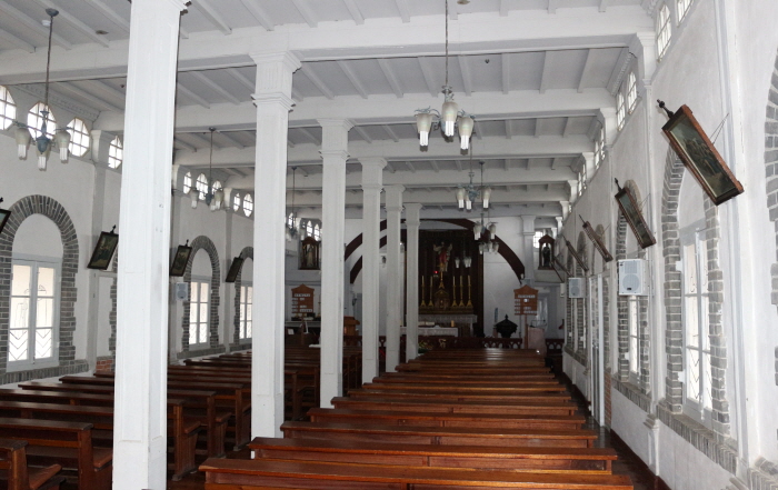 2Ãþ °Ç¹°°ú ºñ½ÁÇϸç ÁöºØÀº ¿·¸éÀÌ ¿©´ü ÆÈÀÚ ¸ð¾çÀÎ ÆÈÀÛÁöºØ¿¡ õÀåÀº ÆÇÀڷΠó¸®Çß°í ¹Ù´Ú¿¡ ³ÎÆÇÁö¸¦ ±ò¾Ò´Ù. õÁÖ±³°¡ µé¾î¿À¸é¼ ÁöÀº °Ç¹°À̸ç Çѱ¹ÀüÅë¾ç½Ä°ú ¼¾ç¾ç½ÄÀÌ ÇÕÃÄÁø Á¡¿¡¼ ÁÖ¸ñÇÒ ¸¸ÇÏ´Ù. º£¸£¸ð·¼ ½ÅºÎ¿Í ±è´ë°Ç ½ÅºÎÀÇ ±â³äºñ°¡ ÀÖ´Ù. ±¹°¡À¯»ê ¸íĪÀº È»êõÁÖ±³È¸¿¡¼ ÀÍ»ê ³ª¹ÙÀ§¼º´çÀ¸·Î º¯°æµÇ¾ú´Ù.